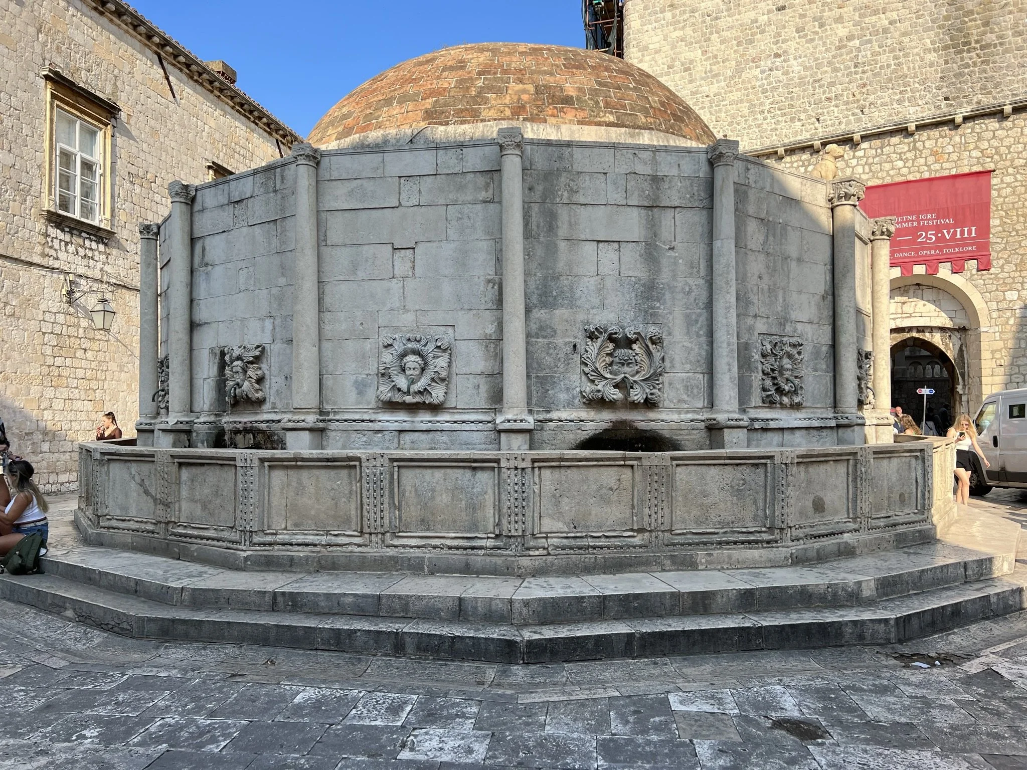 As you wander along Stradun, you’ll soon encounter the impressive Big Onofrio's Fountain. Built in the 15th century, this fountain is an architectural marvel and a welcome respite from the heat with its refreshing drinking water.